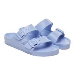 The legendary two-strap design from BIRKENSTOCK – the Arizona. Modeled on the cork original, this sandal is made from ultra lightweight and highly flexible EVA. These sandals are shock absorbing, waterproof, and skin-friendly. Wear them at the beach, in the garden, or around the gym and after workouts. It’s the perfect addition to your classic BIRKENSTOCK sandals.
