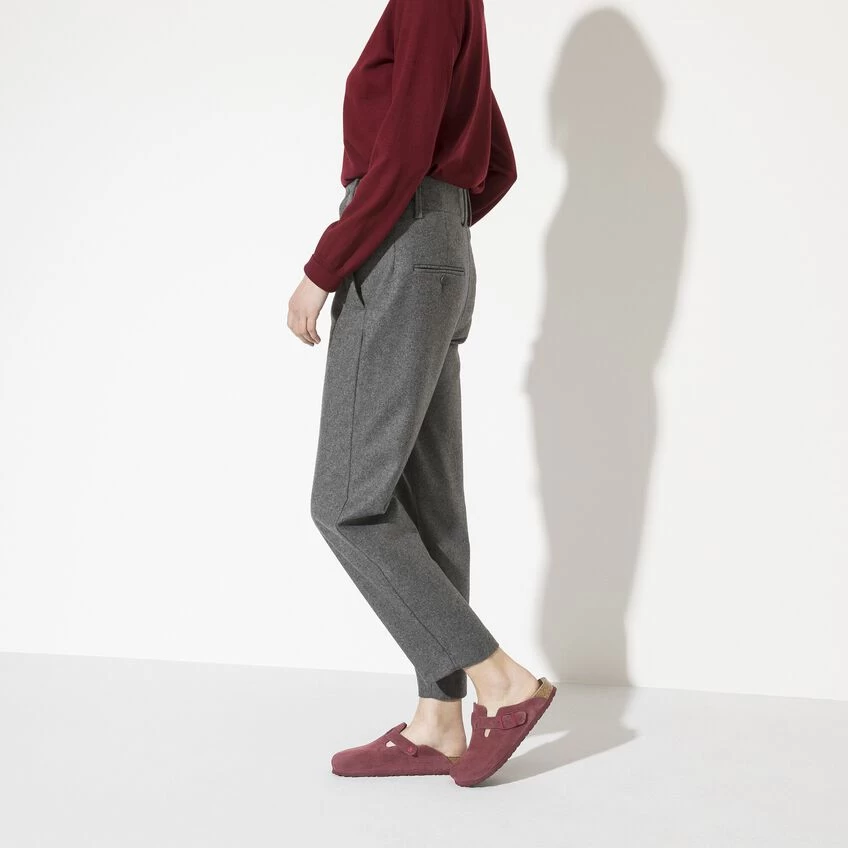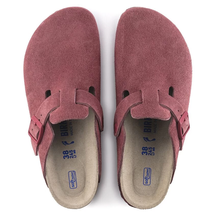 The BIRKENSTOCK Boston clog is a veritable classic that can easily be worn all year round. With its additional foam layer, the soft footbed offers extra comfort all day long. The color-coordinated buckles with a textile feel and a matte design, as well as the color-coordinated outsole, complete the look. The upper is made of soft suede.