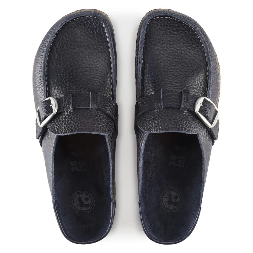 The BIRKENSTOCK Buckley is a moccasin construction clog that’s instantly recognizable as an authentic BIRKENSTOCK original thanks to its thick cork sole. The color-coordinated footbed rounds off the shoe’s look of sophistication. The upper is made from high-quality grained leather.