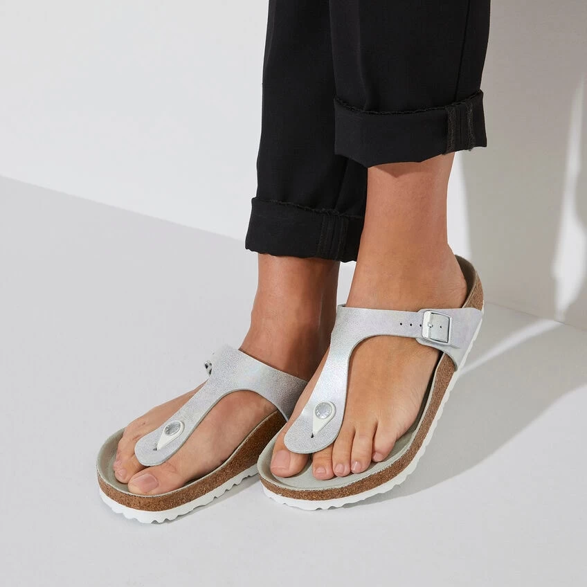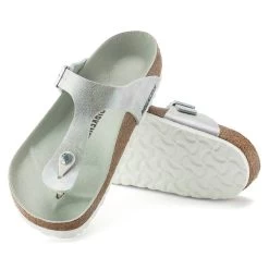 The BIRKENSTOCK Gizeh brings legendary comfort and elegant detailing to the thong sandal. This spring, Iridescent Matcha catches the light wherever you wander, with tonal details that match back to the soft shade. With a vegan microfiber upper and footbed lining for style you’ll love inside and out. Complete with an original BIRKENSTOCK cork-latex footbed for all-day support.