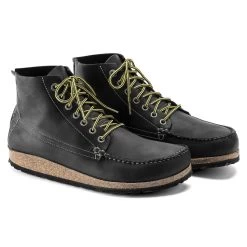The BIRKENSTOCK Marton is a moccasin-style lace-up boot that’s instantly recognizable as an authentic BIRKENSTOCK original thanks to its exposed cork footbed. The striking stitching in combination with the subtle lacing adds to the overall design. The upper is made from extra thick, oiled nubuck leather with an open-selvage finish.