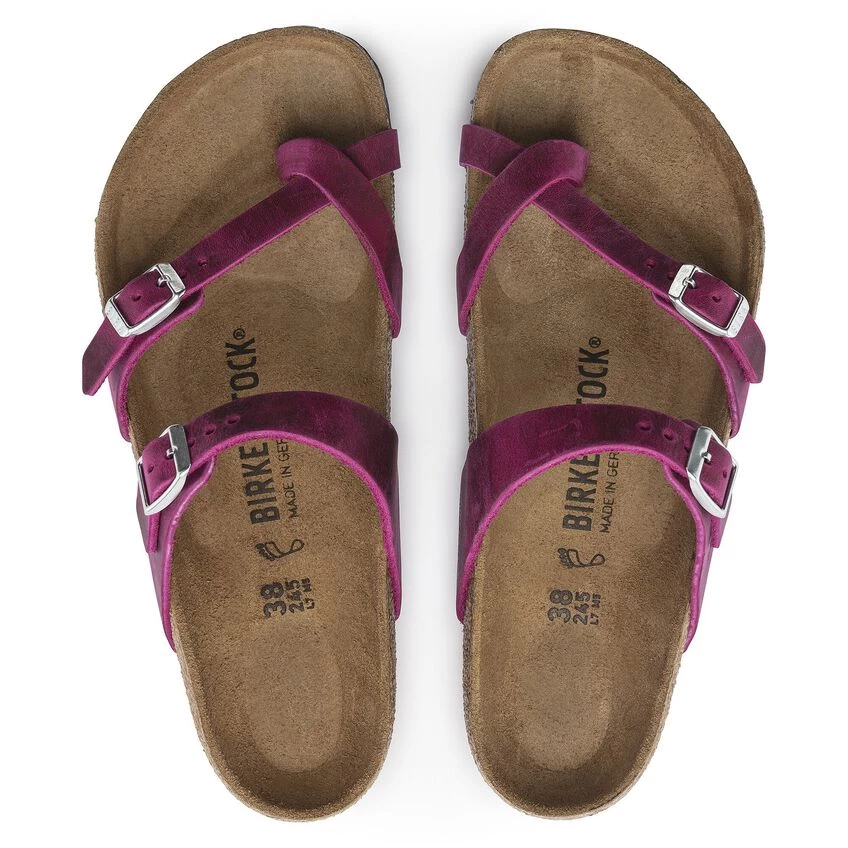 The Mayari from BIRKENSTOCK – an elegantly comfortable sandal with adjustable, crisscrossing straps that form a single loop around the toe. Classic support and adjustability, designed beautifully. The upper is made from oiled nubuck leather.