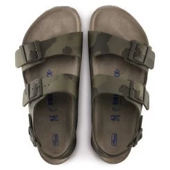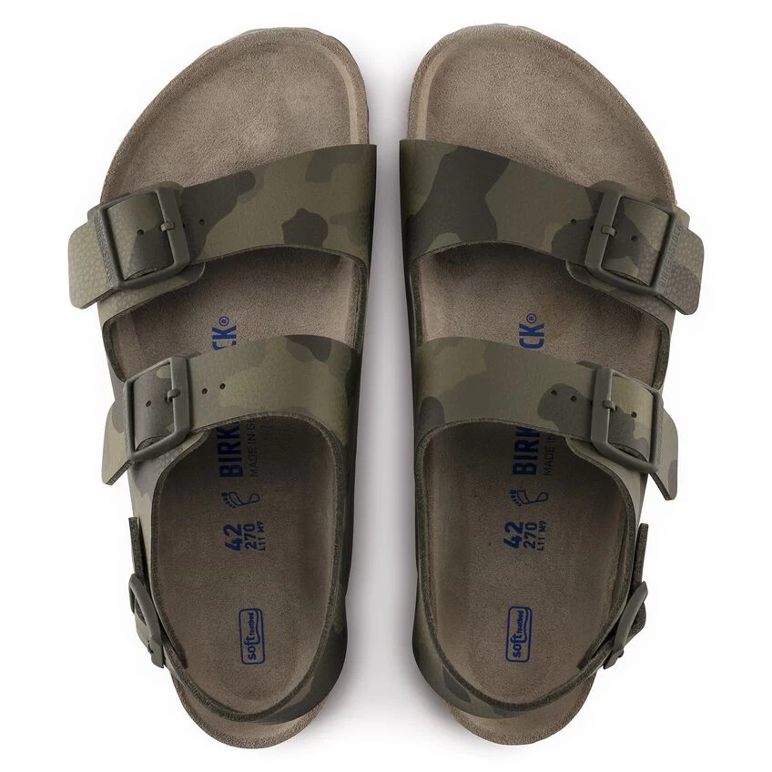 The BIRKENSTOCK Milano is a staple for style and comfort. The backstrap adds extra security and thanks to its additional foam layer, the soft footbed offers extra comfort all day long. Featured in a rugged camouflage print. Shown in Birko-Flor®.