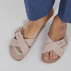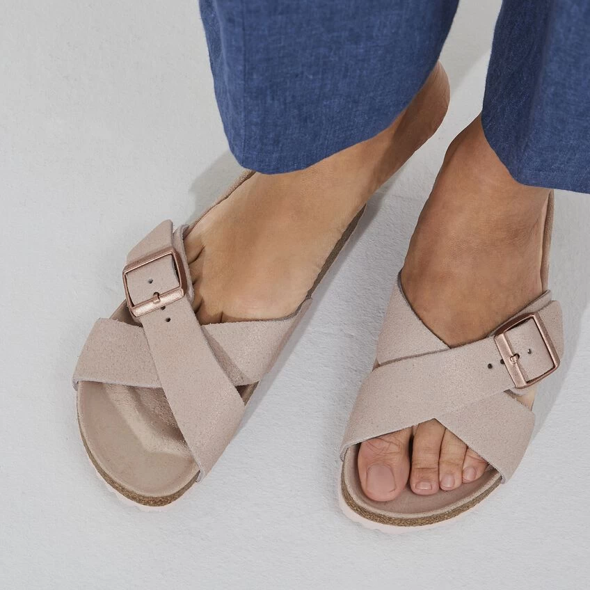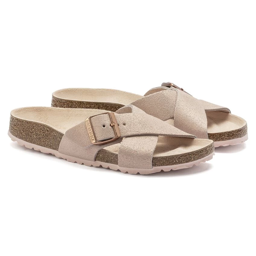 The BIRKENSTOCK Siena is a classic sandal, featuring crossed straps and a subtle shimmer finish. The upper is made from incredibly soft suede for added comfort.