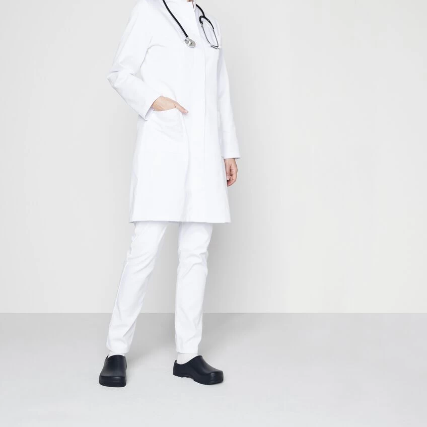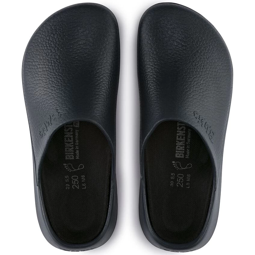 The wide array of colors that the Super Birki is available in makes it highly versatile for use in all sorts of occupational and private settings. This compact shoe made from water-resistant and dirt-repellent polyurethane is also oil- and grease-resistant. This extremely resilient material is washable at up to 60° Celsius and can be efficiently disinfected. Its resilience and its hygiene properties make it ideal for kitchens, medical environments, and the food industry – while it can equally serve as a practical garden clog. The anatomically shaped cork-latex footbed is lined with a moisture-wicking fabric. It can be removed for easy cleaning and is washable at up to 30° Celsius.